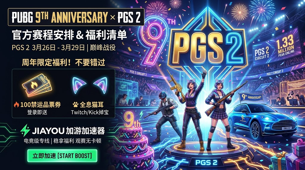 除了 9 周年庆典活动的深度回馈外,PGS 1 全球系列赛第一赛段 的圆满收官也极大地调动了全球玩家的竞技热情。为了迎接即将到来的 PGS 2(第二系列赛),加游加速器已全面升级海外专项线路,确保每一位战友都能在低延迟的环境下抢占先机。